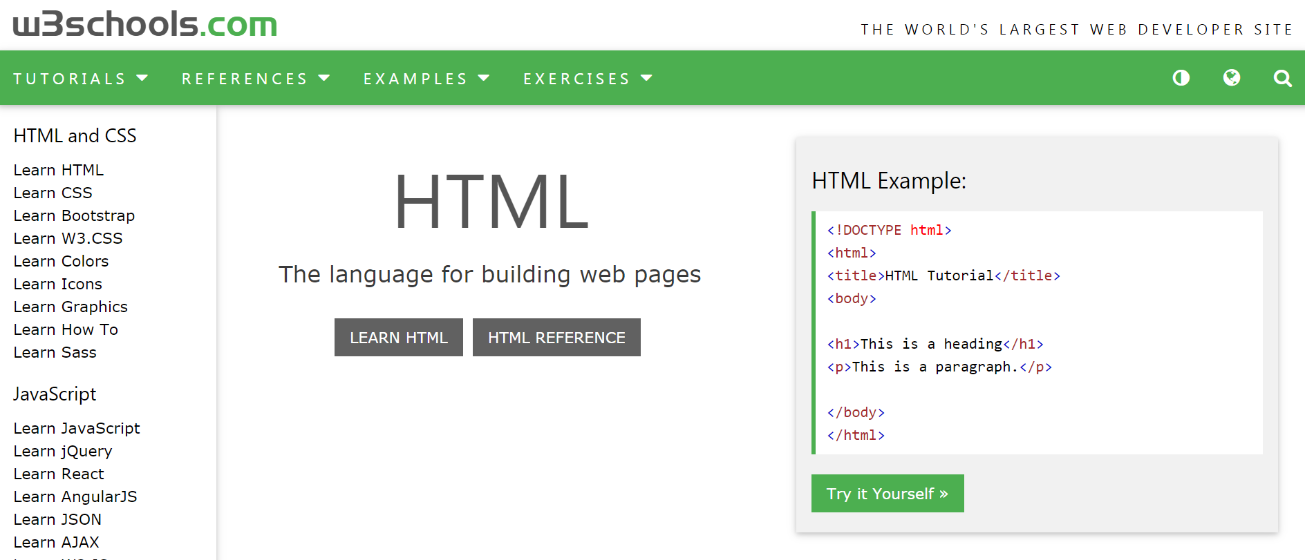 HTML, Java script, css, php, SQL, Jquery 등 배우고 실행결과를 확인가능한 사이트